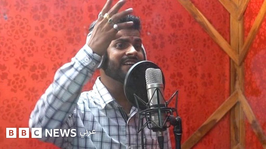 يستعد سانديب تشاترفيدي البالغ من العمر 26 عاما لتسجيل أغنيته الجديدة في استوديو مؤقت بمدينة أيوديا الواقعة بولاية أوتار براديش في شمال الهند.