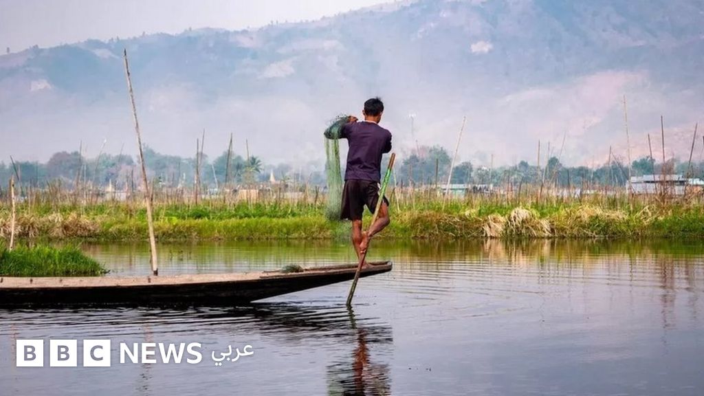 ويصبغ الضباب تلال منطقة شان باللون الأزرق، وتنعكس صور هذه التلال على صفحة مياه بحيرة إينل في منظر بديع كان ذات يوم جاذباً للسياحة في ميانمار.