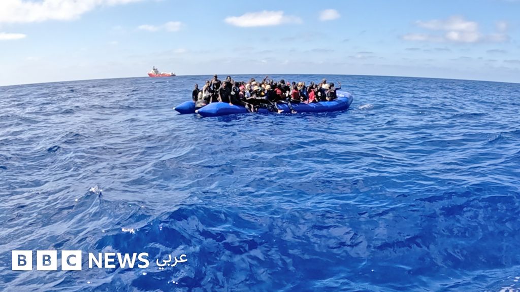 بينما تبحر سفينة الإنقاذ العملاقة ذات اللونين الأحمر والأبيض عبر البحر الأبيض المتوسط، يظهر في الأفق قارب مطاطي أزرق داكن اللون، يعج بالرؤوس المتمايلة.