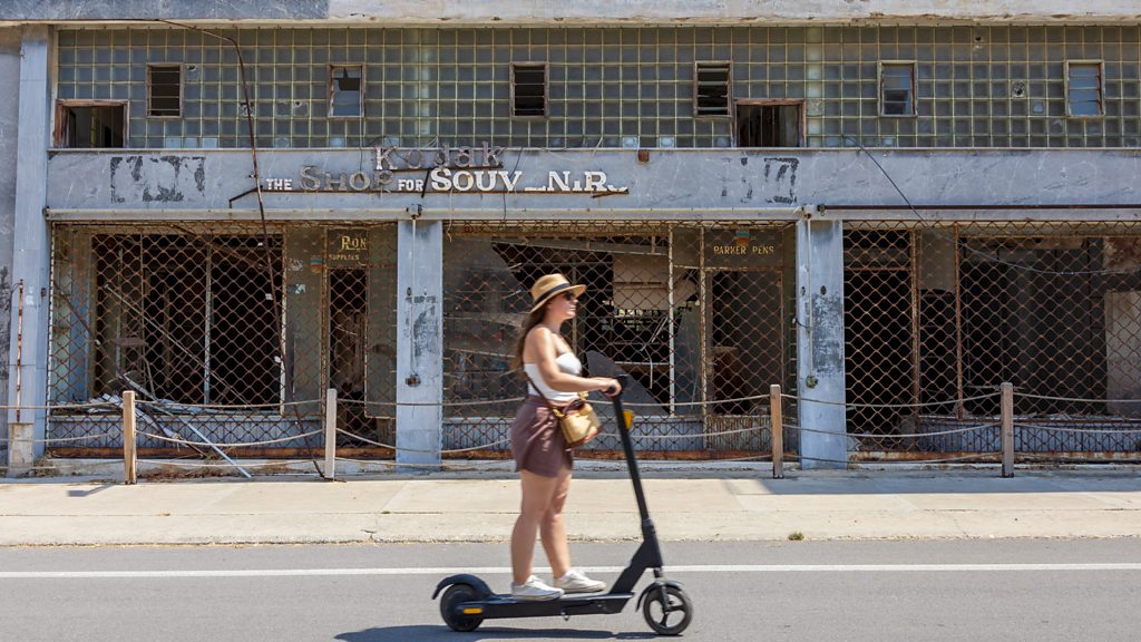 The once glamorous Cypriot beach resort of Varosha has stood empty and frozen in time since war divided the island 50 years ago, but it is now partially open to tourists and there are hotly contested plans for its renewal.