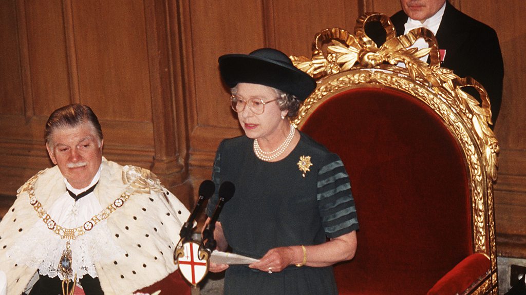 (Photo: Queen Elizabeth II makes her "annus horribilis" speech at London's Guildhall, November 1992. Credit: Anwar Hussein/Getty Images)