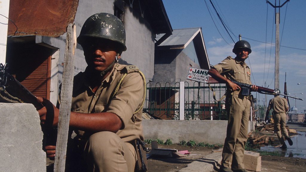 Photo: Indian Border Security Forces in Srinigar in 1993. Credit: Robert Nickelsberg/Liaison/Getty Images.