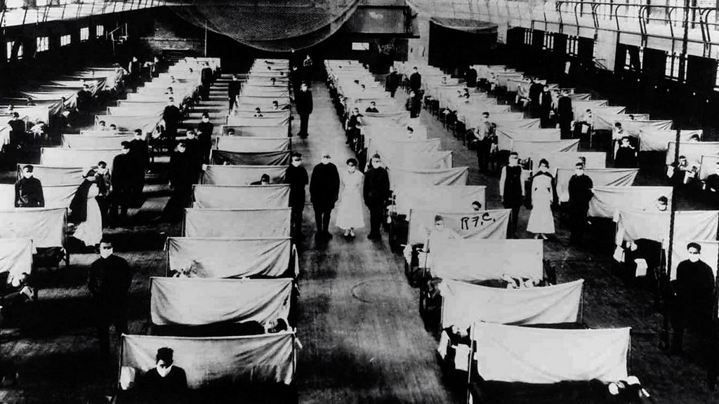 Photo: an influenza ward in 1918. Credit: Hulton Archive/Getty Images.