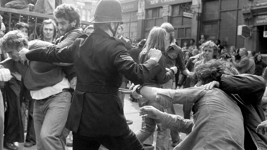 PHOTO: A police officer attempts to restore order in Lewisham in 1977 (Getty Images)