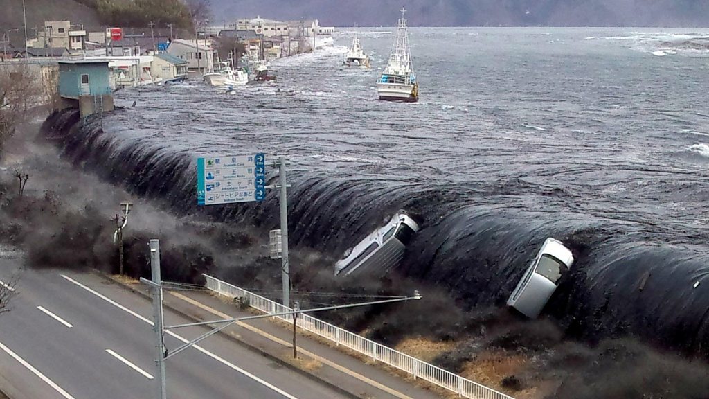 Photo: Tsunami smashes into the city of Miyako in Iwate prefecture shortly after an earthquake hit the region of northern Japan, 11th March 2011 (JIJI PRESS/AFP via Getty Images)