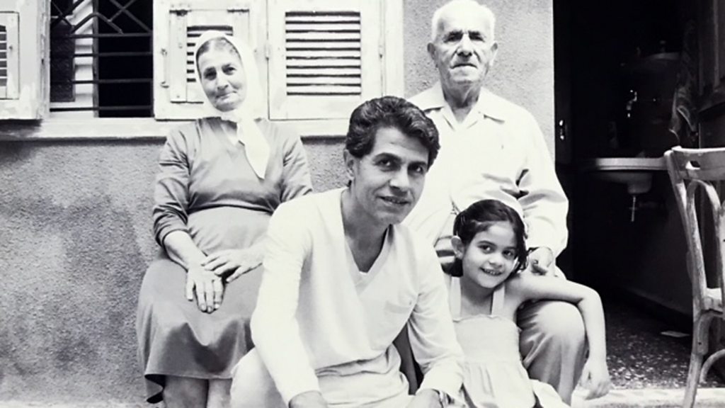 Photo: Sadallah Wannous with his parents and daughter in 1988. With the permission of the Wannous family.