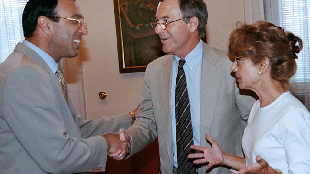 Photo: Steve Hanke and Liliane Hanke meet Petar Stoyanov. Credit: Steve Hanke