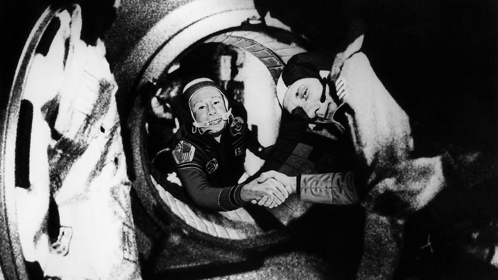 In 1975, Russian cosmonauts and American astronauts met up in space and shook hands. Millions watched on TV as the two spacecraft docked together and the door between the ships opened. The handshake between the two Cold War superpowers was hailed as a symbol of efforts towards peace and stability. Nick Holland tells the story with the help of former NASA chief historian, Bill Barry.