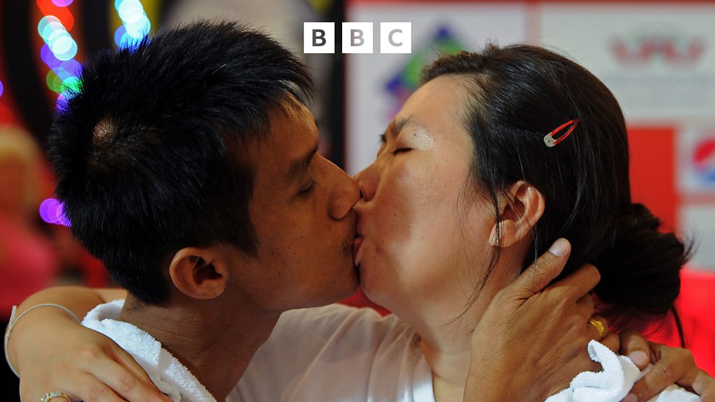 (Photo: Thai couple kiss during a competition. Credit: Pornchai Kittiwongsakul/AFP via Getty Images)
