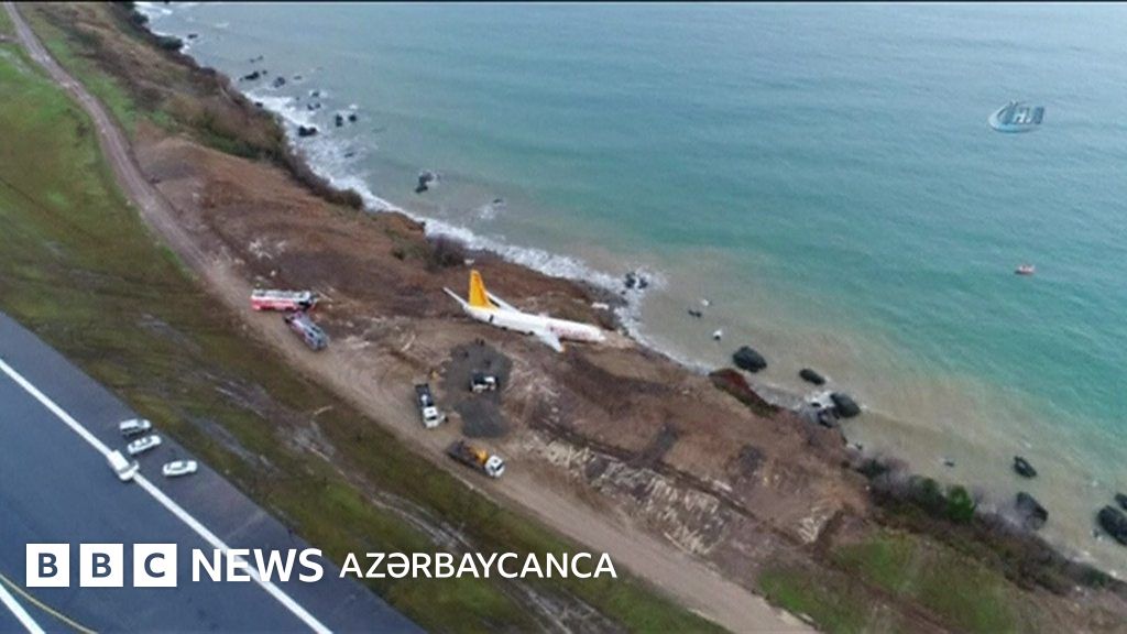 Türkiyə: Trabzon aeroportunda təyyarə zolaqdan çıxaraq dənizə aparan yamaca düşüb