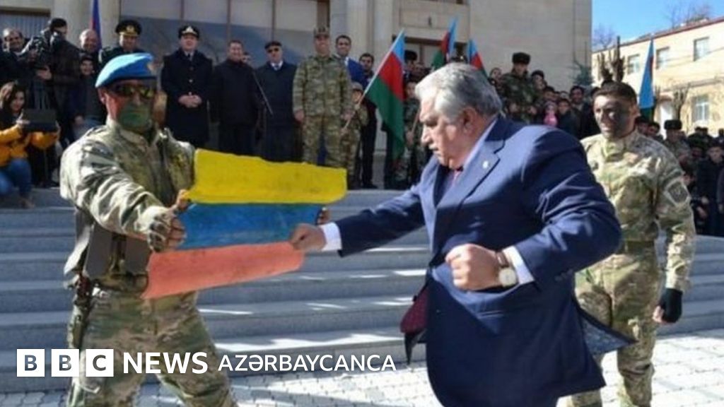 Youtube-da paylaşılmış videoda icra başçısının əsgərlərin əlində tutduğu maketi yumruqla qırdığı görünür. Həmin maket yuxarıdan aşağıya- sarı, mavi və narıncı rənglərlə rənglənib.