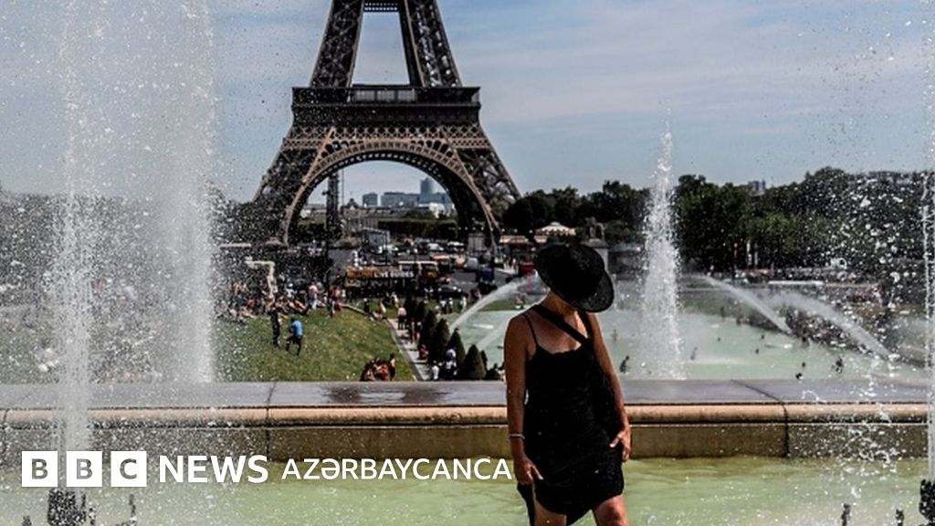 Şəklin alt yazısı, Gənclər Parisin Trokadero hovuzunda əylənirlər. Fransa meteorologiya qurumunun rəsmi vebsaytı hava proqnozu ilə bağlı müraciətlərin sayının kəskin şəkildə artdığını bildirir. Bu arada, istilər məşhur Tour de France velosiped yarışlarının iştirakçılarını sınağa çəkməkdədir. İdmançılar üçün marşrut boyunca əlavə su təchizatı təmin olunub.