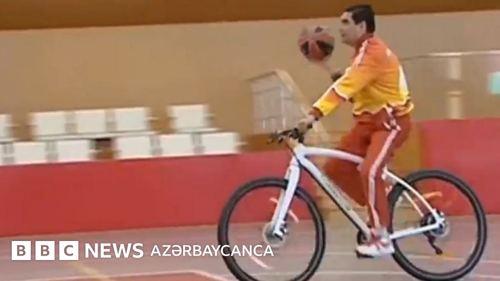 Türkmenator: Velosiped sürə-sürə basketbol səbətindən top keçirən lider