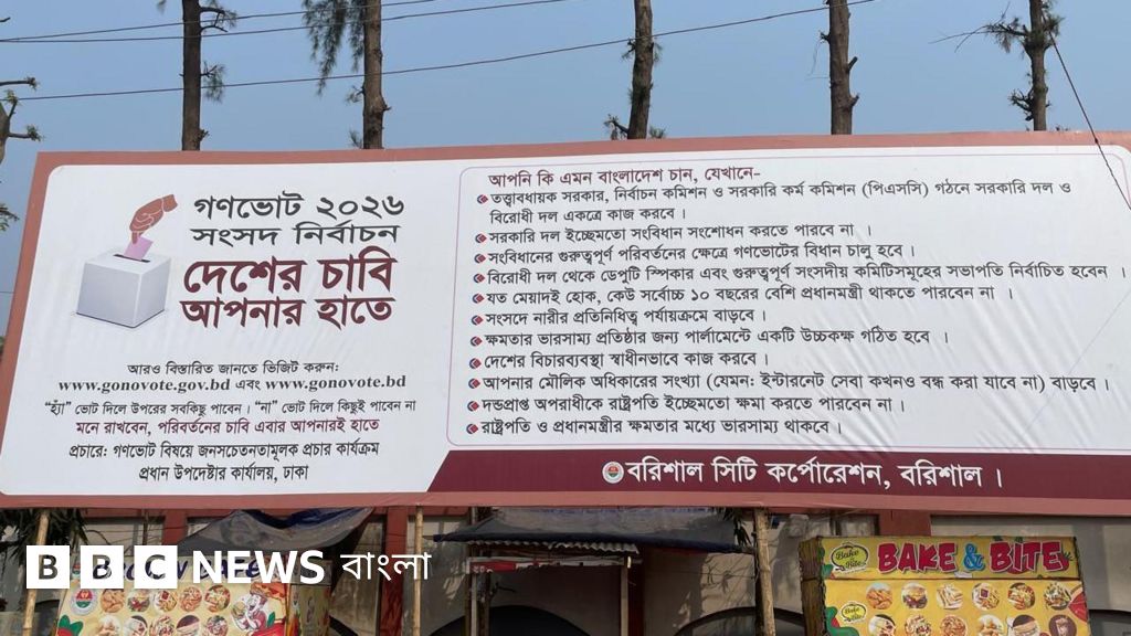 এই যেমন বরিশাল মডেল স্কুলের সাথেই এমন একটি বিলবোর্ড স্থাপন করেছে বরিশাল সিটি কর্পোরেশন। যেখানে গণভোট নিয়ে ১২টি পয়েন্ট উল্লেখ করা হয়েছে। যেটি দেশের বেশিরভাগ জায়গার ব্যানারেই দেখা গেছে।