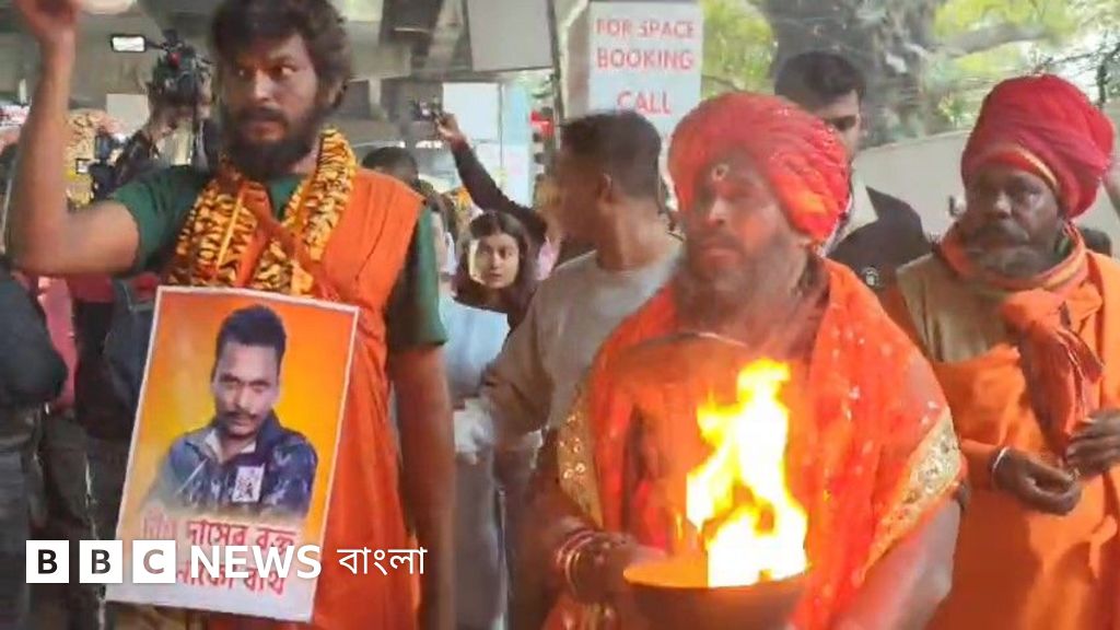 এবার কলকাতায় বাংলাদেশ উপদূতাবাসের সামনে সাধু সন্ন্যাসী নিয়ে বিজেপি নেতার বিক্ষোভ