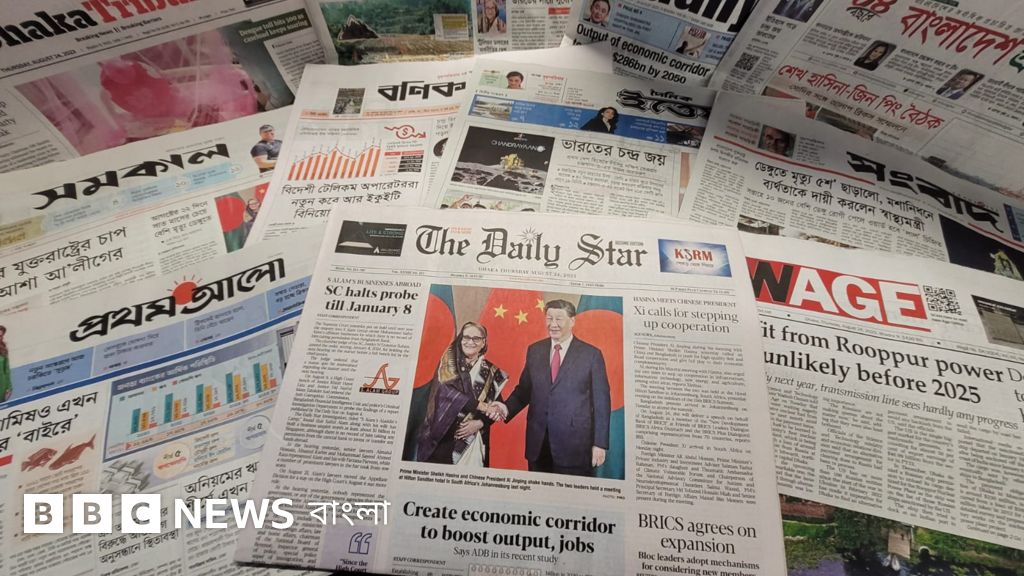 শেখ হাসিনার জোহানেসবার্গ সফর নিয়ে দ্য ডেইলি স্টারের প্রধান শিরোনাম, “Hasina Meets Chinese President: Xi calls for stepping up cooperation”।