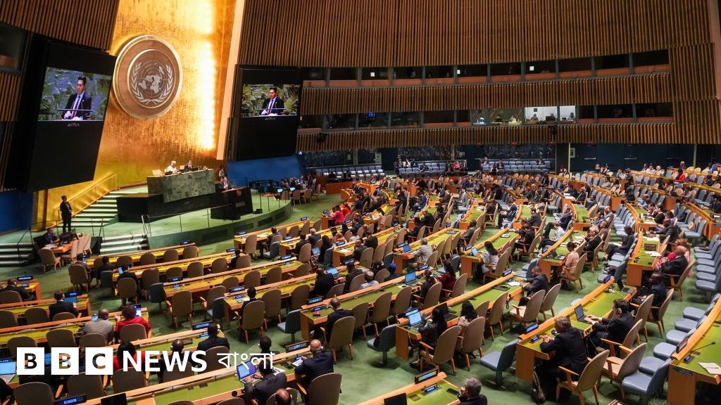ছবির ক্যাপশান, যুক্তরাষ্ট্রে জাতিসংঘের সদর দপ্তরে জাতিসংঘের সদস্য রাষ্ট্রের প্রধানরা সাধারণ পরিষদের অধিবেশনে যোগ দিতে আসেন। ছবি – ২০শে সেপ্টেম্বর ২০২৪