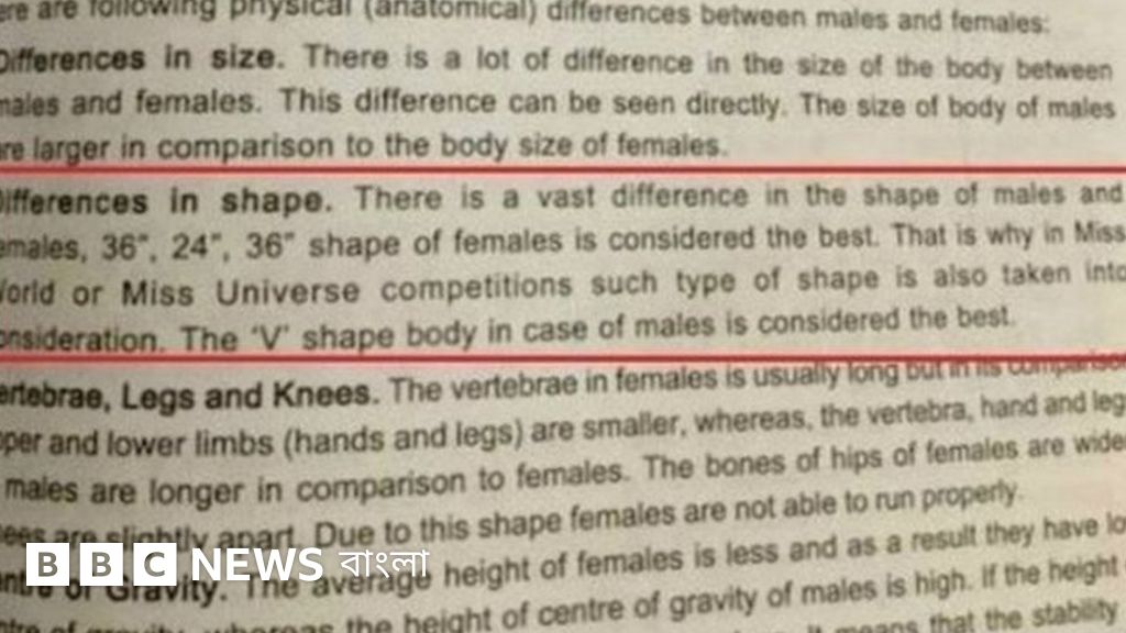 ভারতে একটি পাঠ্যবইয়ে 'মেয়েদের বুক-কোমর-নিতম্বের সেরা অনুপাত হচ্ছে ৩৬-২৪-৩৬' - এমন কথা লেখার অভিযোগ ওঠার পর এর তদন্তের নির্দেশ দিয়েছেন শিক্ষা বিষয়ক মন্ত্রী।