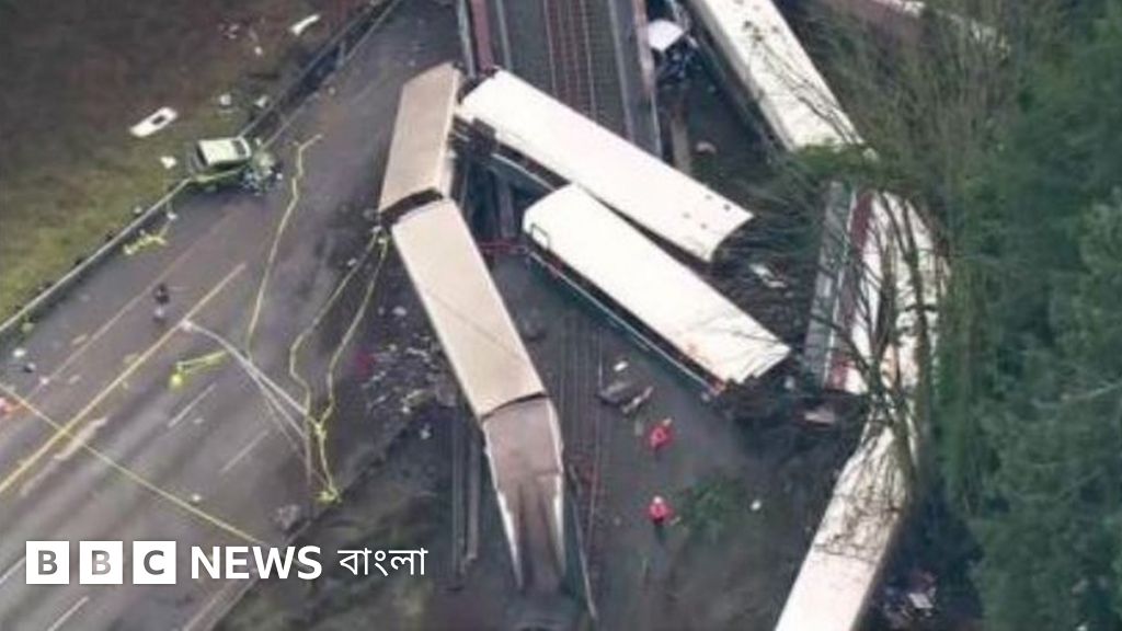 যুক্তরাষ্ট্রে ফ্লাইওভার থেকে ছিটকে ট্রেন রাস্তায়: বহু হতাহত