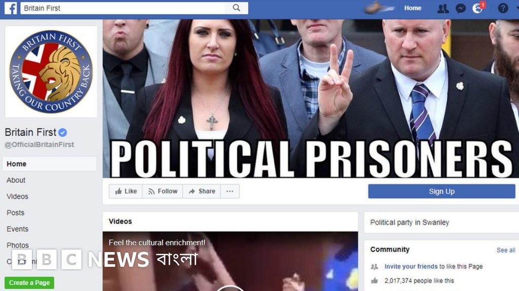 ব্রিটেনে মুসলিম-বিরোধী গোষ্ঠী ব্রিটেন ফার্স্টের সব অ্যাকাউন্ট বন্ধ করলো ফেসবুক