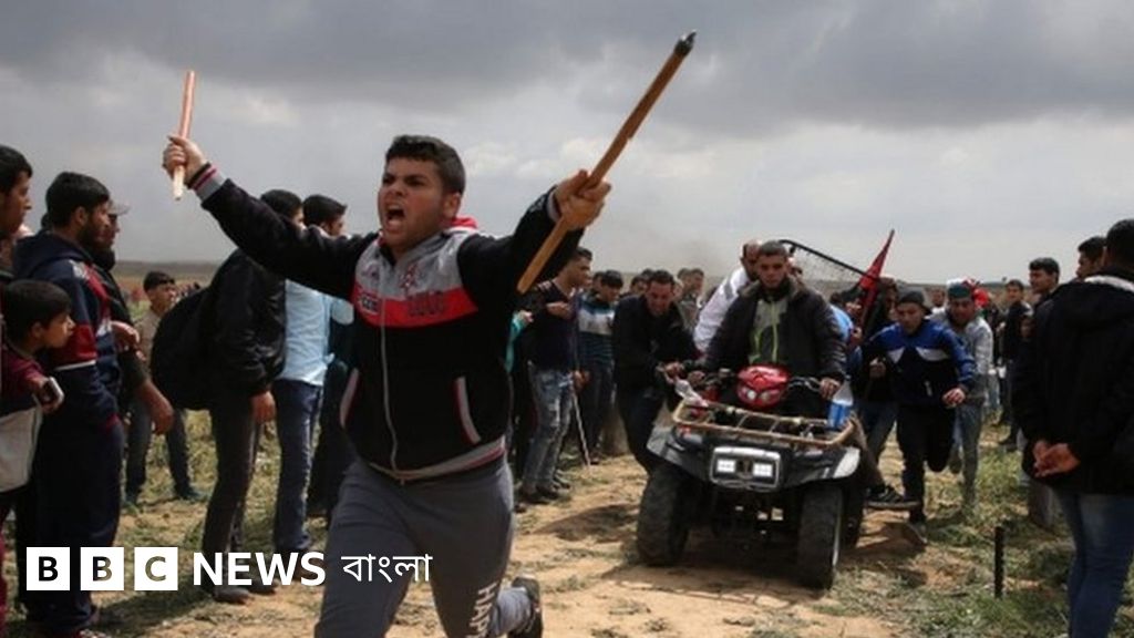 হাজার হাজার ফিলিস্তিনি গাজা থেকে ইসরায়েলের সীমান্তের দিকে মিছিল করে যাওয়ার পর তাদের ওপর ইসরায়েলি সৈন্যরা গুলি চালিয়েছে।