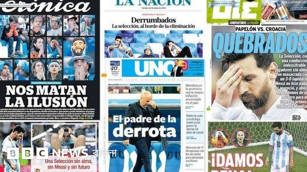 ক্রোয়েশিয়ার কাছে বৃহস্পতিবার ৩-০ গোলে পরাজয় এবং বিশ্বকাপের প্রথম পর্ব থেকে ছিটকে পড়ার ঘটনায় আর্জেন্টিনার মানুষ একইসাথে বিস্মিত, লজ্জিত এবং ক্রদ্ধ। গতরাতের ম্যাচের পর থেকে আর্জেন্টিনার মিডিয়া এবং সোশ্যাল মিডিয়াতে তার প্রতিফলন দেখা যাচ্ছে।
