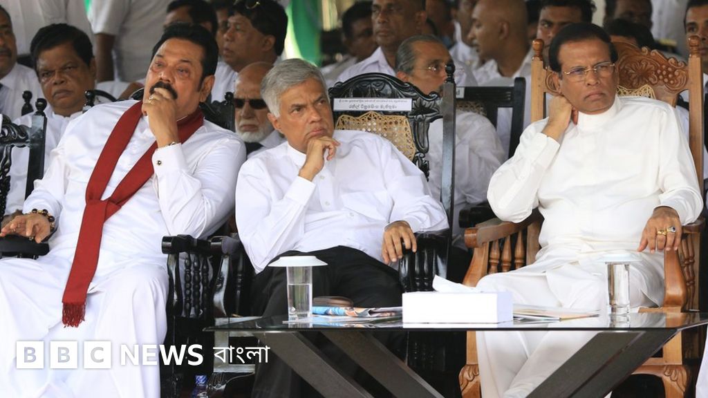 ছবির ক্যাপশান, বাম দিক থেকে: রাজাপাক্সে, বিক্রমসিংহে এবং সিরিসেনা।