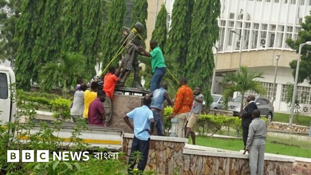 'বর্ণবাদী' গান্ধীর মূর্তি উৎপাটন গানার বিশ্ববিদ্যালয়ে