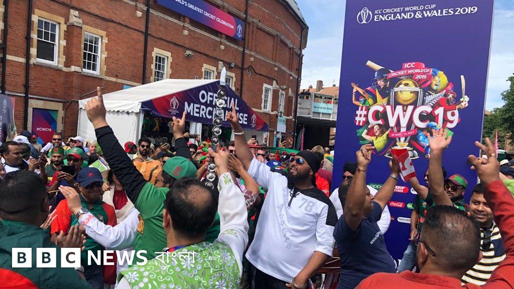 ছবির ক্যাপশান, ওভাল স্টেডিয়ামের বাইরে বাংলাদেশের সমর্থকরা