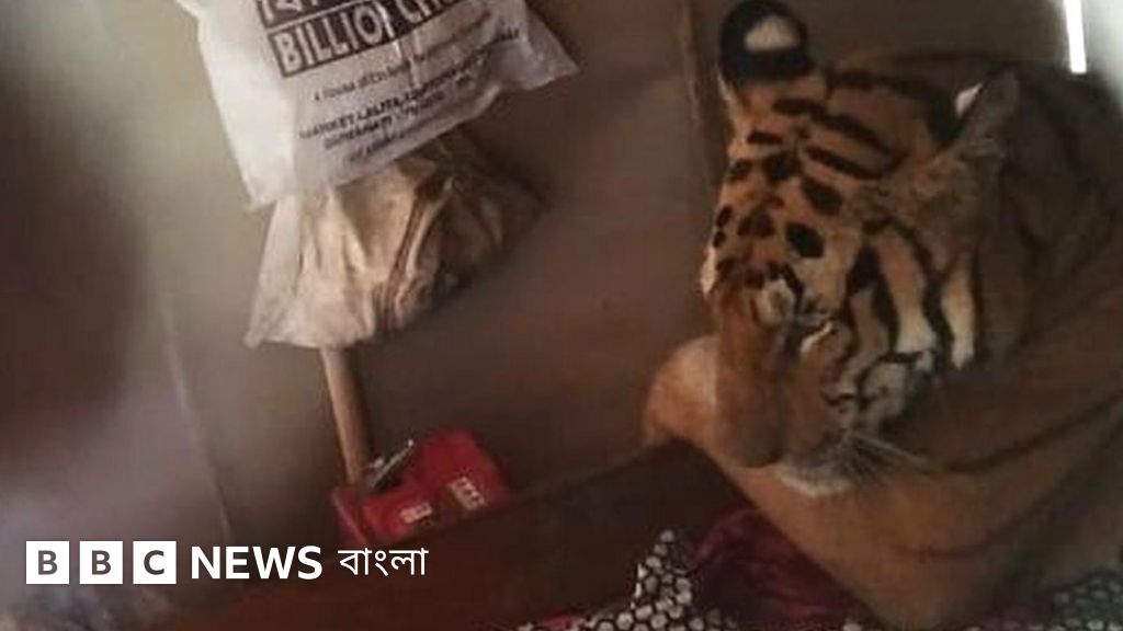 ভারতের বন্যা-কবলিত আসাম রাজ্যের একটি জঙ্গল থেকে একটি মেয়ে বাঘ স্থানীয় একটি বাড়ির ভেতর ঢুকে পড়ে সেই বাড়ির খাটে শুয়ে আরাম করছিল।
