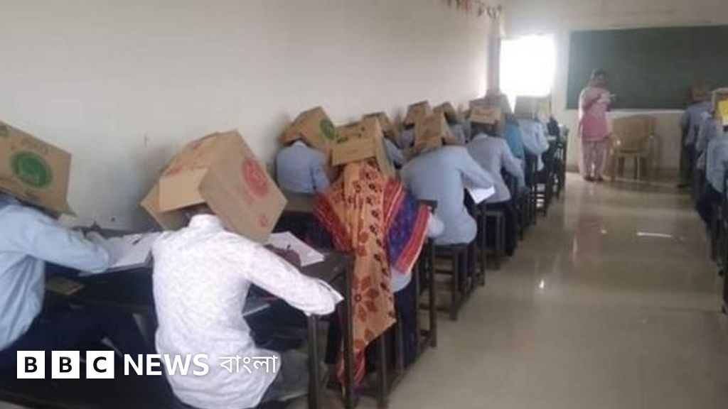ভারতে নকল ঠেকাতে মাথায় বাক্স পরে কলেজে ছাত্রছাত্রীদের পরীক্ষা