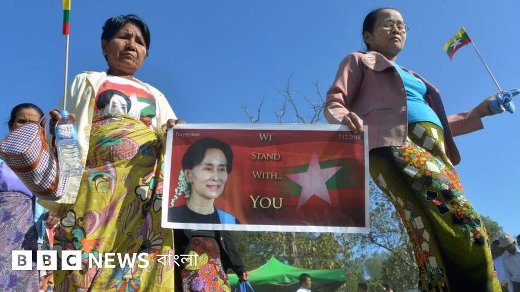 মিয়ানমারে হাজার হাজার মানুষ গত কয়েকদিন ধরে বিভিন্ন শহরে গণহত্যার মামলায় অং সান সু চির পক্ষে সমাবেশ করছে।