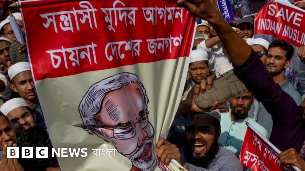 ছবির ক্যাপশান, বিক্ষোভকারীরা দাবি তুলেছেন, বাংলাদেশের প্রতিষ্ঠাতা রাষ্ট্রপতি শেখ মুজিবুর রহমানের জন্মশতবার্ষিকী অনুষ্ঠানে ভারতের প্রধানমন্ত্রী নরেন্দ্র মোদী যাতে ঢাকায় আসতে না পারেন।