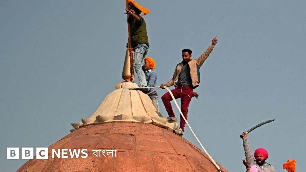 দিল্লির লাল কেল্লায় শিখ ধর্মের পতাকা ওড়ালো বিক্ষোভকারী কৃষকেরা, সংঘর্ষে নিহত ১