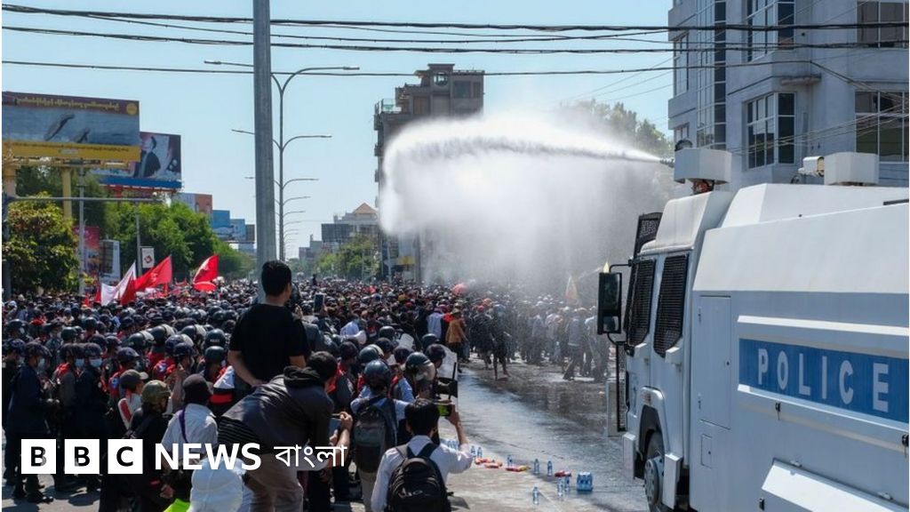 মিয়ানমার অভ্যুত্থান: জলকামান এবং রাবার বুলেট দিয়ে বিক্ষোভ দমনের চেষ্টা