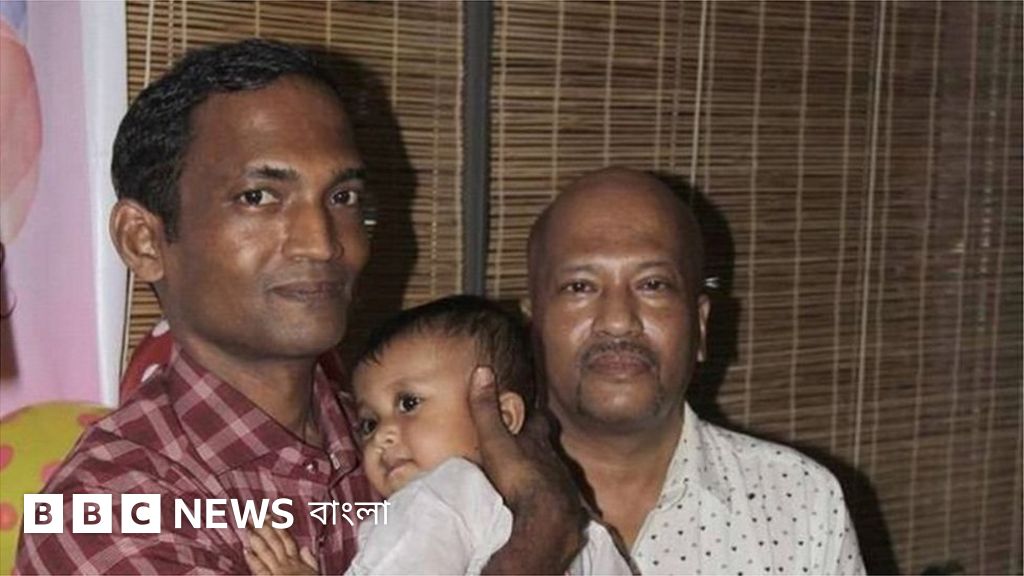 ছবির ক্যাপশান, কার্টুনিস্ট আহমেদ কবির কিশোর - বাঁয়ে, কোলে শিশুকন্যা এবং ডানে বড় ভাই আহসান কবির -ডানে (পারিবারিক ছবি)
