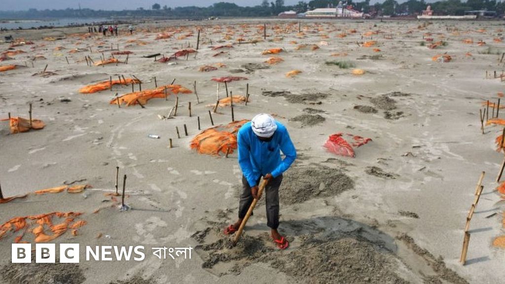 উত্তরপ্রদেশের এলাহাবাদ শহরের কাছে গঙ্গার তীরে শত শত নতুন কবরের সারি। দাহ করার জন্য শ্মশানে জায়গা হয়নি বলে মানুষজন মৃত স্বজনদের এখানে এনে মাটি চাপ দিয়ে চলে গেছেন। কবর দেয়ার এসব ঘটনা ঘটেছে প্রধানত এপ্রিল মাসে।
