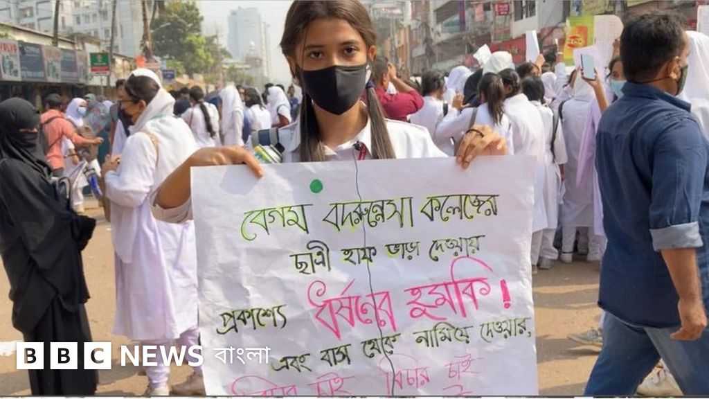 বাসে অর্ধেক ভাড়া দিতে চেয়ে 'ধর্ষণের হুমকি' পাওয়ার অভিযোগে ঢাকায় ছাত্রী বিক্ষোভ