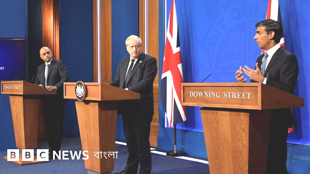 ছবির ক্যাপশান, প্রধানমন্ত্রী বরিস জনসনের সঙ্গে সাজিদ জাভিদ ও ঋষি সুনাক।