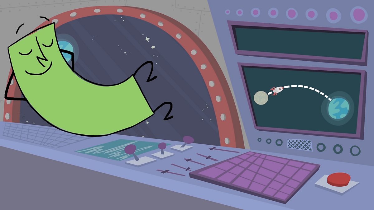 Mae gofodwr yn dangos sut i adio ffracsiynau.