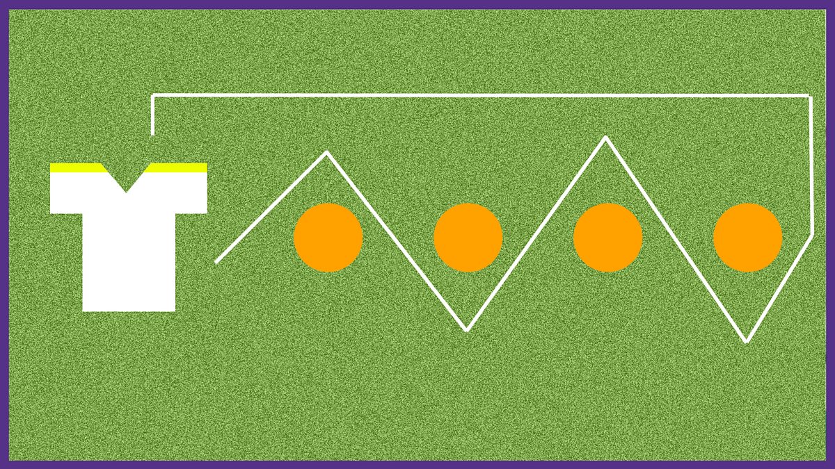 Set out the four cones/t-shirts in a line again and dodge around each one, before running back to the start. See how many shuttles you can do in 30 seconds.