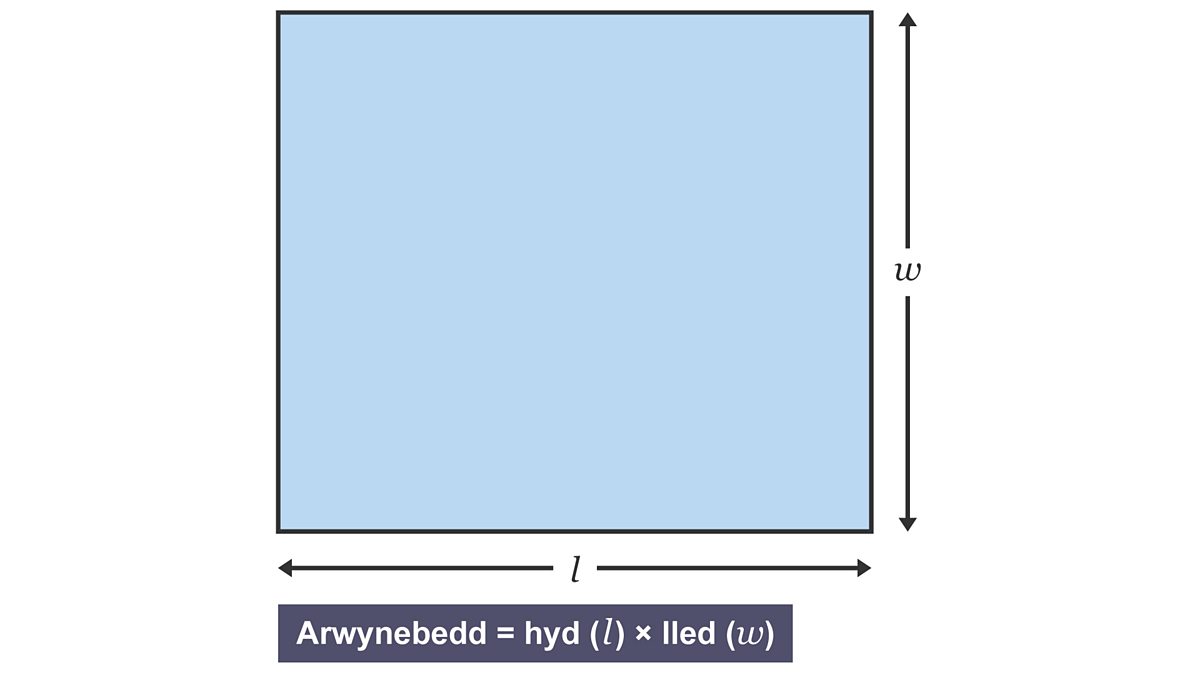 I weithio allan beth yw arwynebedd sgwâr neu betryal, lluosa’i uchder gyda’i led.
