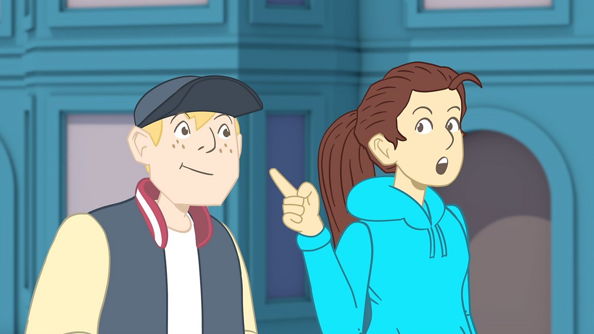 Rhodri's annoyed that his tablet has lost power. Erin isn't happy about the way that Rhodri expresses himself, and so tries to help him develop his opinion.