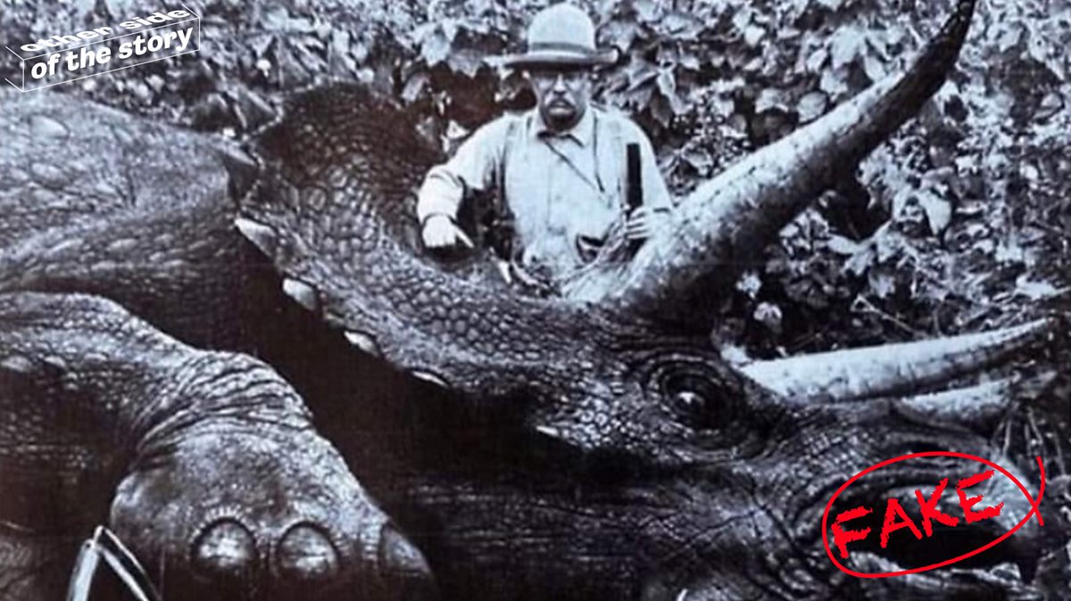 A reverse image search is another useful way of determining whether what you are seeing is real. According to fact-checking site Snopes, the original source of the image was an Instagram user who posted it in February 2015, with the caption: "Fun fact: Theodore Roosevelt (the 26th US president) was an avid big game hunter. #nofilter #unedited #biggame #hunting #teddy #Roosevelt #president #theodoreroosevelt #dinosaur #triceratops #photoshop #funny #jurassicpark #jurassicworld #dino."