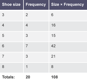 | Shoe size | Frequency |