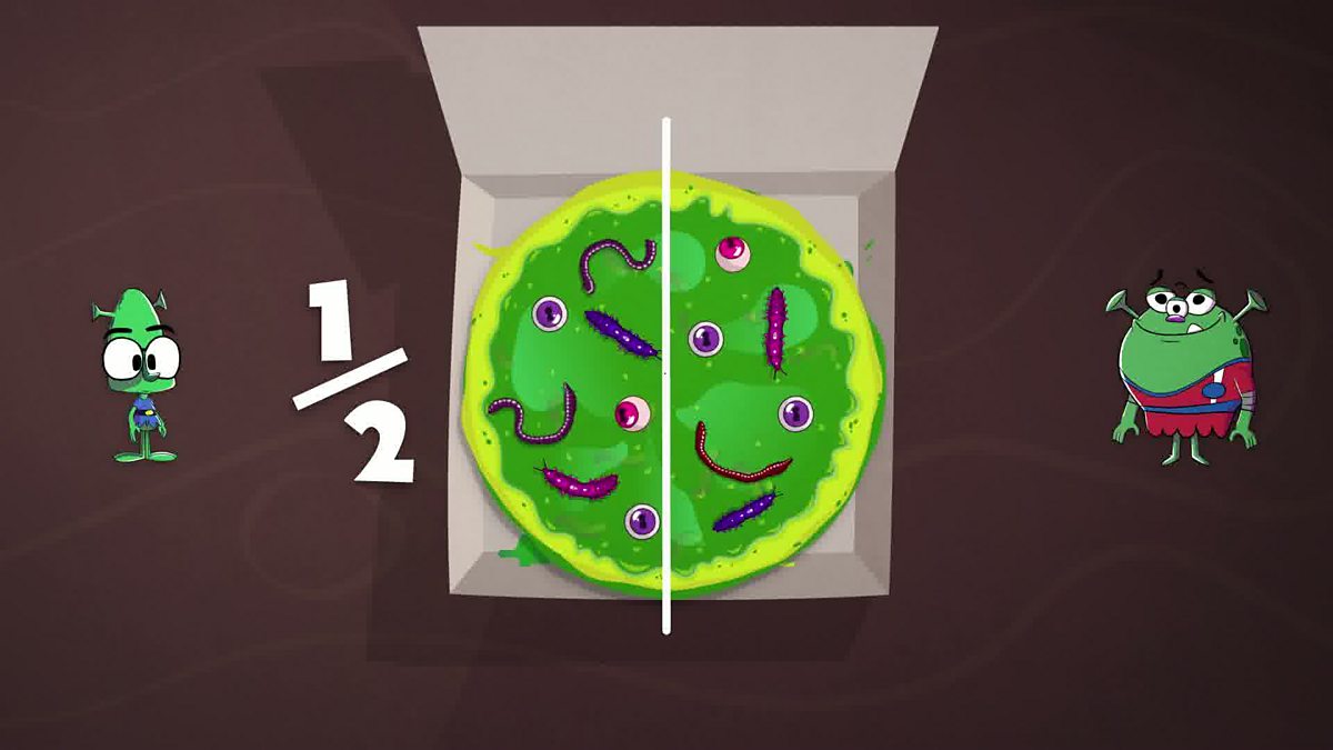 Tha ½ a' ciallachadh gun deach 1 phàirt de rud a roinn ann an 2 phàirt.