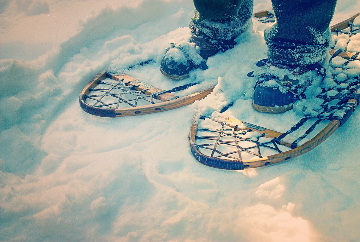 Snow shoes spread the force over a larger area and reduce the pressure on the snow.