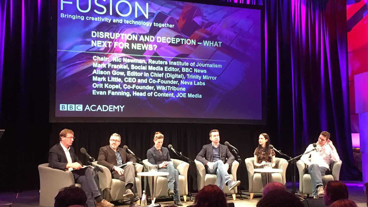 Disruption and Deception - What Next for News? was the topic for a lively panel discussion at the Social Media and Broadcasting Conference hosted by the BBC Academy. Hosted by Nic Newman from the Reuters Institute for Journalism with a panel of industry leads, the debate covered areas such as fake news, click bait, responsible product development, data control and personalisation.