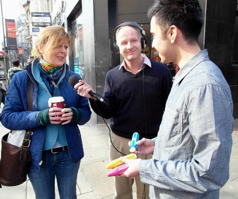 Andrew Bomford will report for us tonight on what he tells me is an "initiative at one of our leading Art and Design schools - Central St Martins in London - to find a way to get good product ideas from students out into the marketplace. British universities haven't been very good at capitalising on the innovations they come up with, and by teaming up with an American company from Silicon Valley they hope to have a way at bridging that gap. In the photos we see student Jeremy Innes-Hopkins, who came up with an idea for sun cream which is fun for children to use. Any parent will know how difficult it can be sometimes to get children to lather up on the beach when all they want to do us run off and play. Jeremy's simple idea is for sun cream tubes which look like big marker pens, and can be drawn on children by themselves and each other.