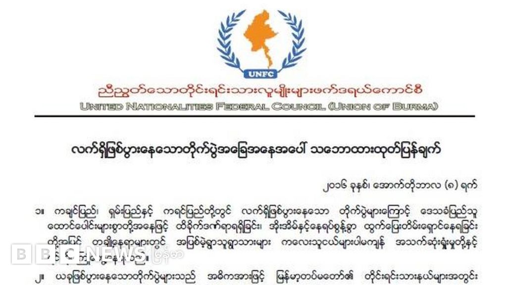 ကချင် ၊ ကရင် နဲ့ ရှမ်းပြည်နယ်တွေမှာ လက်ရှိ ဖြစ်ပွားနေတဲ့ တိုက်ပွဲ တွေနဲ့ ပတ်သက်လို့ UNFC ညီညွတ်သော တိုင်းရင်းသား လူမျိုးများ ဖက်ဒရယ် ကောင်စီက သဘောထား ကြေညာချက် ထုတ်ပြန်ခဲ့ပါတယ်။